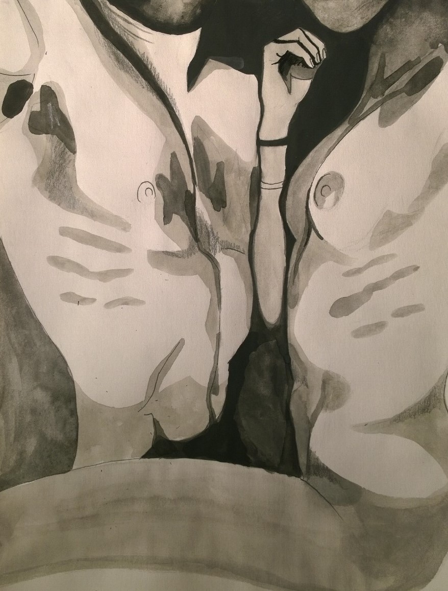 Modern Intimacy 2 (Study), Goauche on Paper, 8×11, 2014